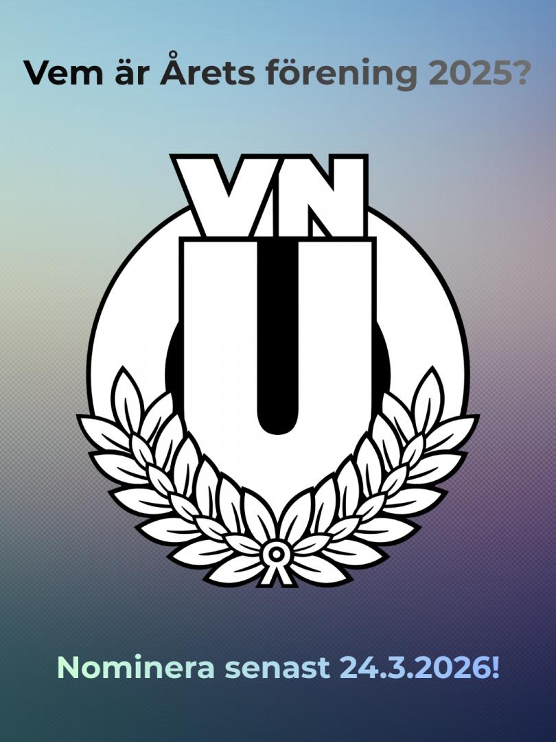 Känner du till en förening som skulle vara värd utmärkelsen? Tipsa oss per e-post till info(at)vnur.org Nominera fram till den 24.3.2026.